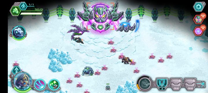 - 建筑机制:占据矿点后,自动生成兵营和采矿一体的基地,以及若干(1-3)个点位固定的防御塔基座,玩家不用像传统rts游戏一样规划建筑布局和建造顺序。