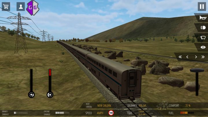 只能说游戏品质是我玩过的pe端最好的了 良好的建模 车轮可动 转向架会跟随铁轨转动(虽然有点硬直不够线性 但是这是手机端 要啥自行车)😂 讲讲车辆吧 前期做任务别超速、急刹车这样是会扣钱的而且会损伤机车以及车厢 维修费用很贵的分分钟破产钱欠债 还有燃料也是需要钱购买的 (维修车辆补充燃料都可以在火车站进行) 关于增加车厢和车头也都是在火车站操作的 初始车辆和第二个无法增加机车头 要到第三个才可以增