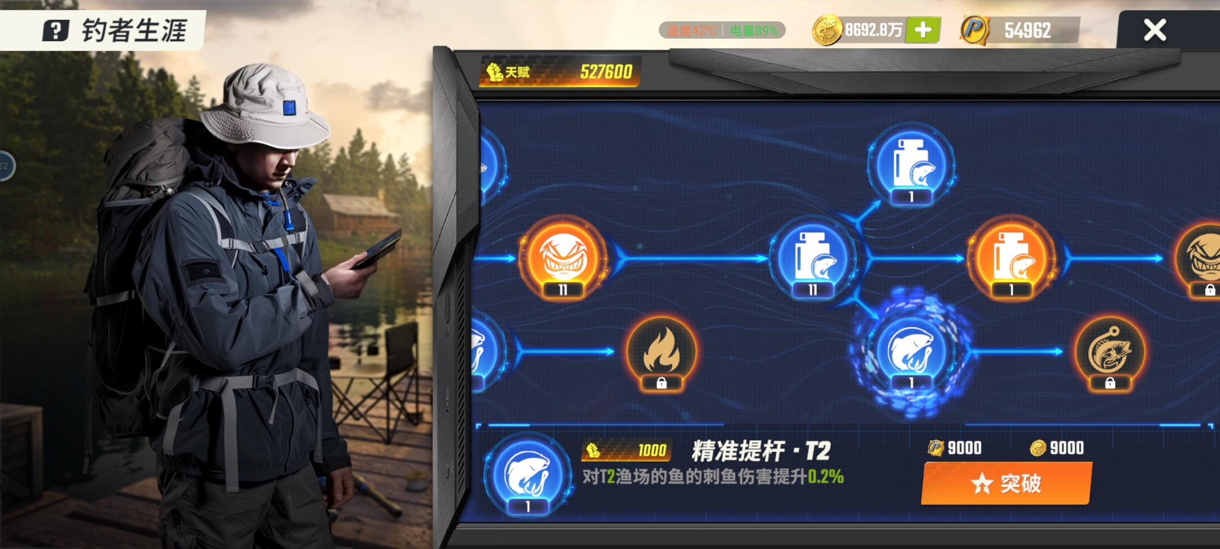 #欢乐钓鱼大师 #游戏日常 #欢乐钓鱼大师攻略 游戏中新增的天赋技能,我联系大家先将主线天赋点往前推,分线点一级即可。当然是对于还没有解锁全部钓场的小伙伴而言,尽快点到自己当前钓场才是最重要的。