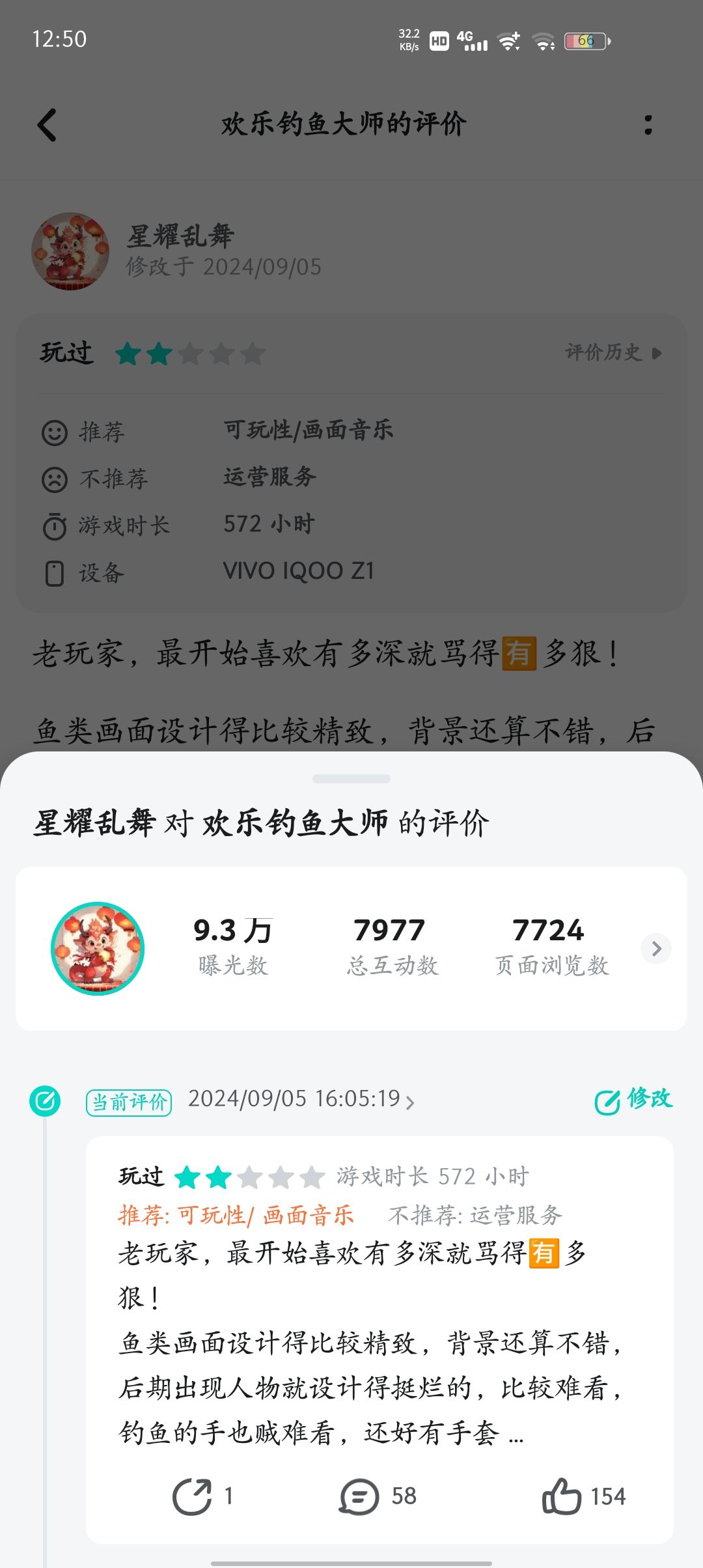 这572小时算是独一份了,本人老玩家一枚。 不屑于用脚本,也鄙视那些脚本玩家,没加钓鱼群,一些攻略内容可以借鉴,但是更多靠自己尝试和经验积累出来的。 新手避坑要点: 1、别升级太快,闪卡渔场活动和新渔场活动容易冲突,甚至可能回去出现多个新渔场活动冲突,锦标赛只能有两个,冲突了奖励你就会损失一大堆,15级才会开启闪卡活动和新渔场活动,新人7天活动且珍惜!(前期可以多利用对决肝积分,经验少,升级慢,高