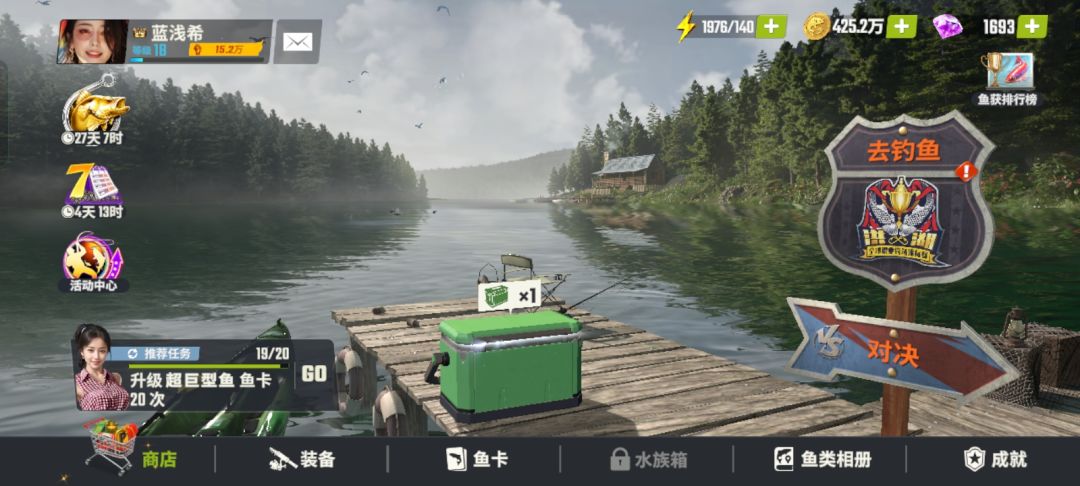 这次主要讲一下各种活动 首先补充上次说的1体力来图问题,现在可以考虑5体力的决斗,里面钓的鱼也算图鉴里,而且优先开局两图的活动,这里需要大量的鱼获分,就是你钓鱼那个分数,我贝尔800万+了,前两图居然不到250万,现在去补非常累,这样也让我失去了开局七天乐的大量奖励,建议新人一定要狠狠把握。七天乐第一名奖励10金箱,5000体力,8000钻 5体力是优先级最高的,这能给你大量的鱼获分 前两图的活动