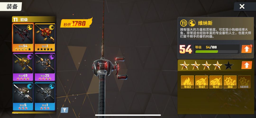 1. 渔场 游戏中渔场目前一共分为四个等级,从最初的T1,T2,T3,T4,一共四个等级,同一等级中不同渔场的解锁等级不同,渔场分为淡水渔场与海水渔场。 其中20级左右解锁T2级别渔场,30级解锁T3级别渔场。 2. 鱼竿 鱼竿与渔场一样,一共也是四个等级,分别是T1,T2,T3,T4。 不同等级鱼竿技能是一样的,属性也是一样的。 T1鱼竿只能在T1级别的渔场钓鱼,T2鱼竿只能在T2级别的渔场钓