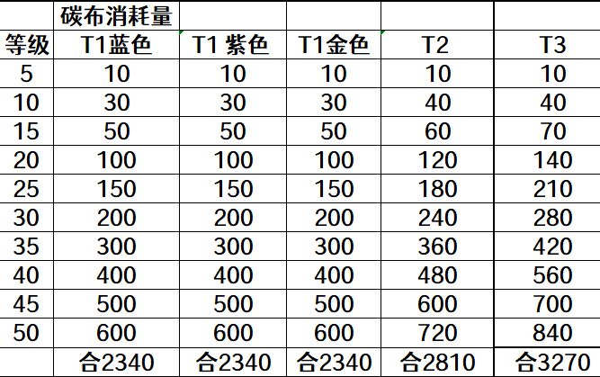 蓝竿、紫竿、金竿,三种颜色的鱼竿在同级同星的数值差距是巨大的,我们绝对优先选择金色鱼竿,因为对决的渔场是随机匹配的,有可能到后面段位也会刷到T1的渔场,这个时候你没有金色鱼竿就很吃亏。而提升鱼竿等级每5级是需要消耗碳布的,而且不能重置鱼竿,所以一开始确实不推荐胡乱升级用掉碳布。注意每个阶段的不同颜色鱼竿升级需要的碳布是一样的,T1升到50级需要2340碳布,T2升到50级需要2810碳布。 正确的