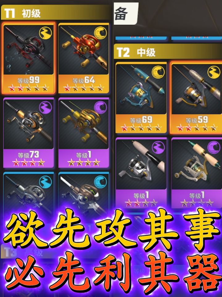 🚩🚩🚩学会这三招!🚩🚩🚩你就是真正的钓鱼大师!👍🐟🔍第一步!🐟🐟🐟欲先攻其事 必先利其器⚒选择好的鱼竿是必然条件🎣🚨🚨🚨🚨🚨🚨🚨🚨🚨但是需要注意的一件事情就是T1的鱼竿只能在T1的地图中使用T2的鱼竿只能在T2的地图中使用所以在前期就尽量给鱼竿升星 ⭐但是不要去升级 ❌避免消耗过多的升级资源👌🔍第二步!🐟🐟🐟选择一张好的地图也是重中之重⭕不知道各位是否注意到在游玩过程中