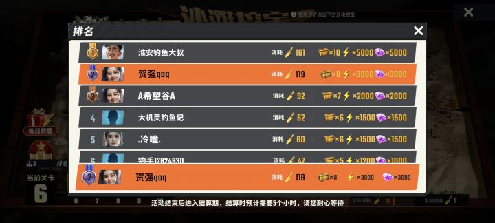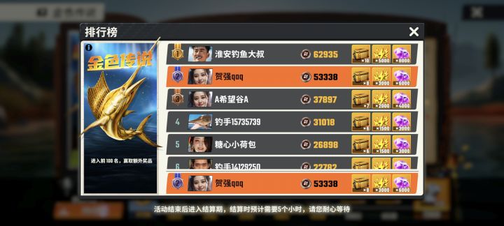 1.活动第三天进场,15000的体力随便拿,你跟我说体力不够,你在搞笑吗?嘉年华第一,铲子(骰子)挖沙第一,金色传说第一。随便拿,懂了吗?我不想教大家怎么玩游戏。但有些卷狗非要早就上班坐公交车还要手贱登录一下游戏。还有8点还没到就进场,半夜两点搞偷袭的。有意义吗?2.新手一定要选择一个图死磕,知道了吗?钻石的作用只有去买你要死磕的那张图的鱼卡(建议有活动的一张淡水图和一张海水图) 和然后买个两手