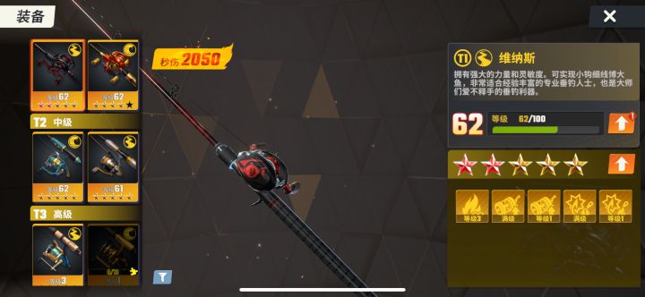 进入游戏,输入兑换码VIP666/VIP777/VIP888可以获得紫色T1鱼竿光轮3000和一些鱼卡和钻石有时效或要求的兑换码我发评论区了金色鱼竿需要开启金钓箱获得金钓箱的主要来源是幸运转轮转轮需要转轮票转轮票的主要来源分别为紫色/金色钓箱,锦标赛对决和这个活动刚开始建议去参加锦标赛,不管排名,把积分奖励拿完就行,第一个金箱子必出金色T1鱼竿维纳斯。升级鱼竿到五十级可以钓起所有鱼