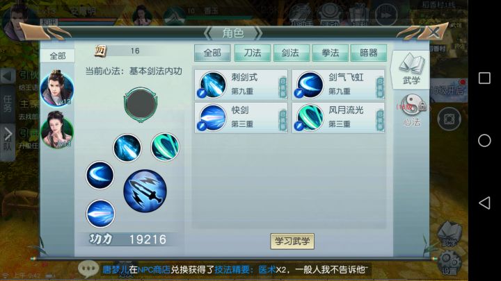 学习门派武学是,不够贡献,想退出界面没有退出选项
