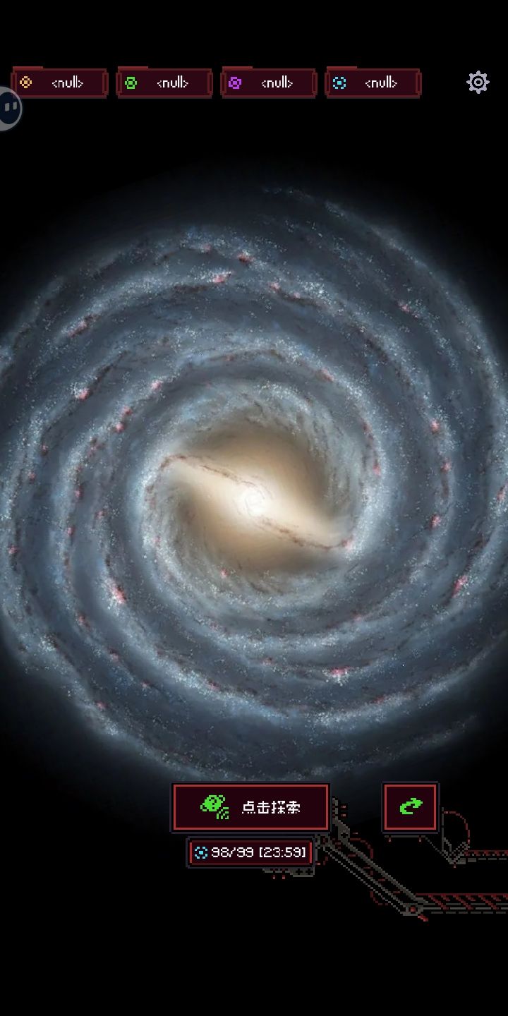 探索到的星球可以解锁矿点,从而采矿获得资源,矿点开启越多收益越大,这很好理解。探索时有概率发现星球,总计有30颗星球待发现,可探索和养成的空间非常大。可同时开采的星球格子数量有限制,需要看广告解锁。