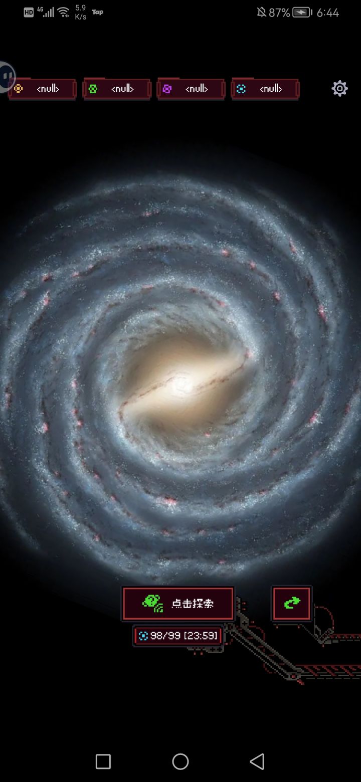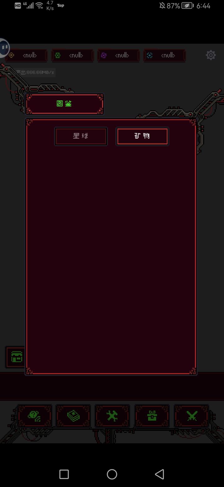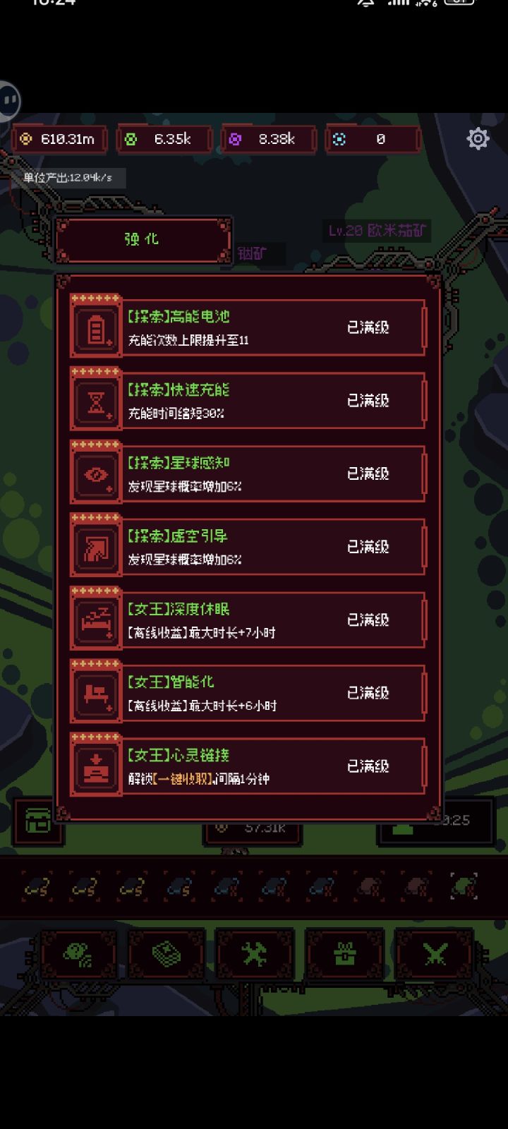 没有新手引导,主打快速游玩(其实是没有做)为各位主宰大大们提供了初始致富资金:星币*3k,瓦斯*30,星尘*500,探索点*5桃牛建议的新上任主宰大大们游玩路线如下:1)挖矿:用星币升级矿山和解锁新矿山,提升矿物单位产出收益(左上角可以看到产出速率)2)强化:推荐先使用星尘强化D级星球的产出收益。3)探索:进入探索,可以探索到突发事件,需要主宰们选择后获得相应奖励,有随机概率会探索到新的