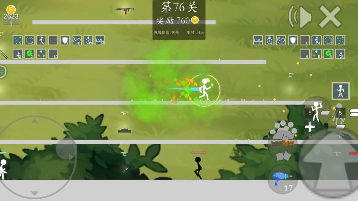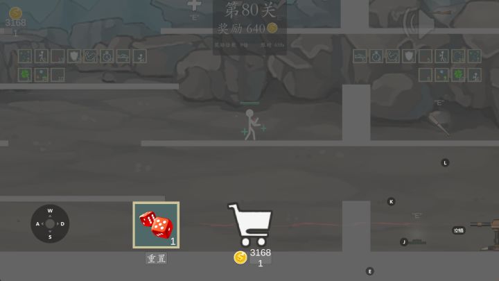 太好玩了,就是容易卡。难度不高,只要适应操作。500金币的时候买火箭筒就好了。我玩五十几关就卡,而且我很想整特殊操作。就是疯狂点冷却并购买分身术但是这个游戏容易卡,我没撑到那个时候。就卡没了。毕竟这个游戏需要捡地上的武器才能攻击,那敌人是不是都打不了。