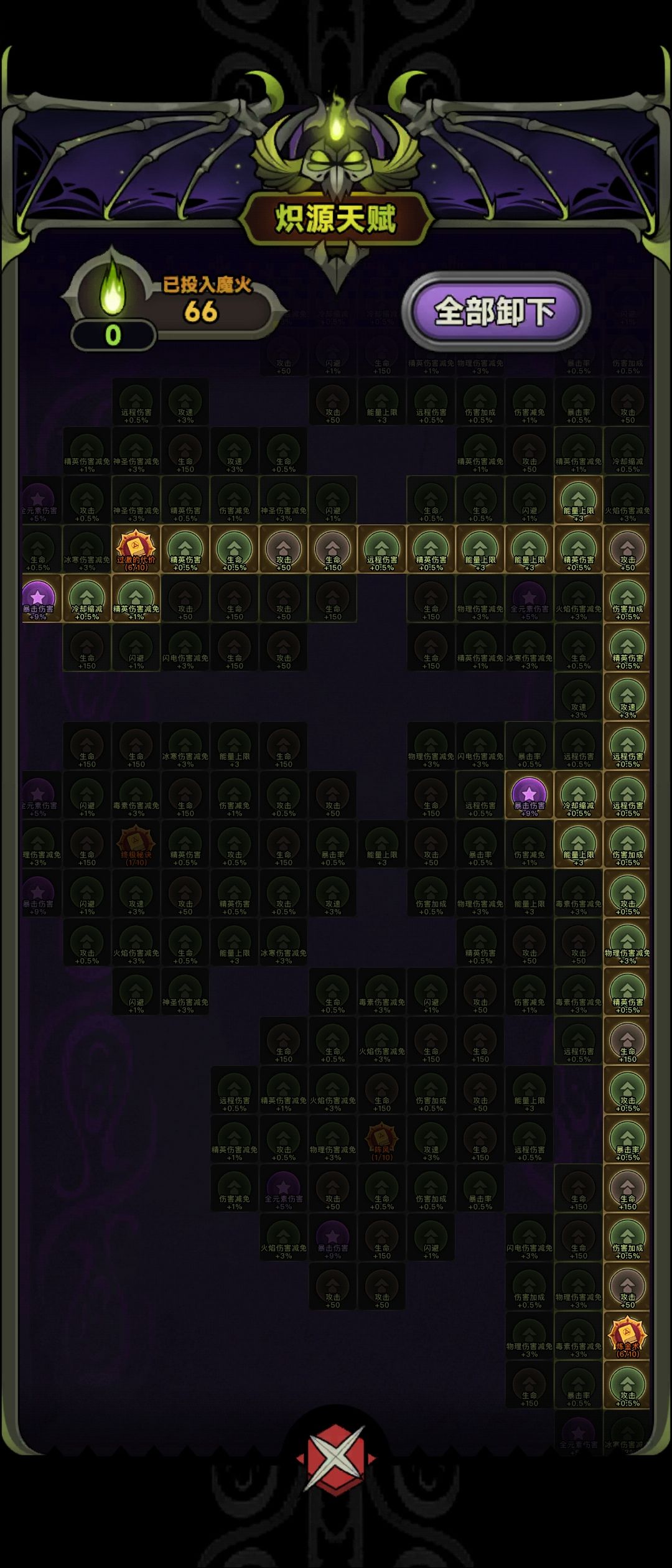 当大佬们在冲150层时间,以及各种求带90层的同时,还是希望大家能享受第一次游戏,自己组建BD冲层的乐趣。 因为可能还是会有人需要配装跟技能加点,所以还是放一下图吧。技能这么加点主打一个肉,能莽,过图舒服,不脆皮。在同等装备下我试过霜降叠层,在你没有过70层以及很多远古去神铸的时候,没有元素潮汐的增伤是完全比不上冰普攻的。 另外因为0氪也没有去商店每天看广告领30钻石,所以还没有法师专属宠物小丑(
