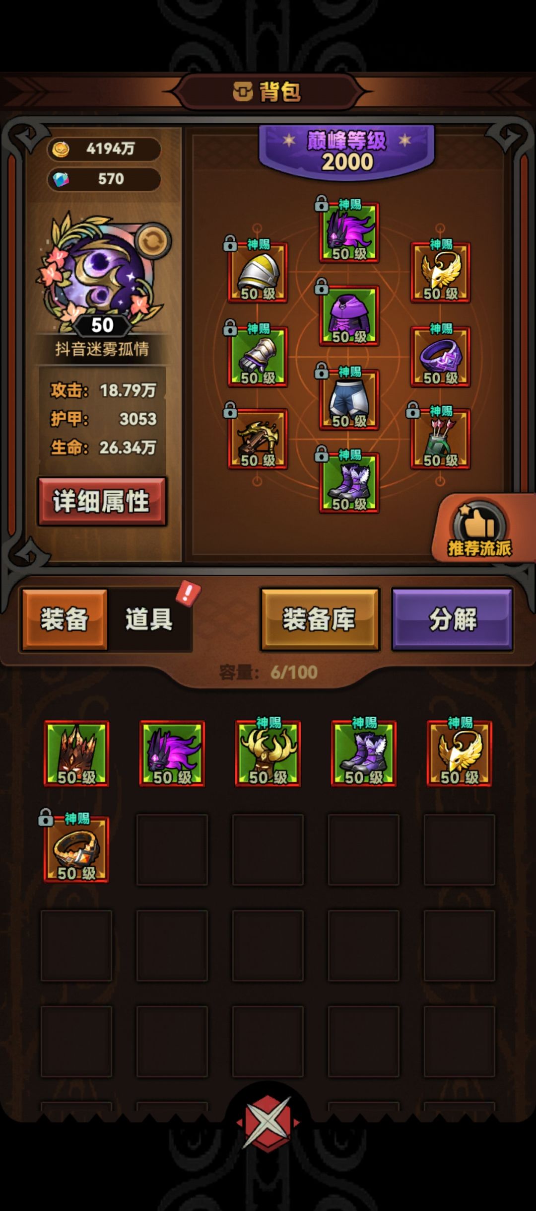 适合推图,行宫也能打一点,这套不需要暴击爆伤喵 因为无法暴击 这套很肉容错高