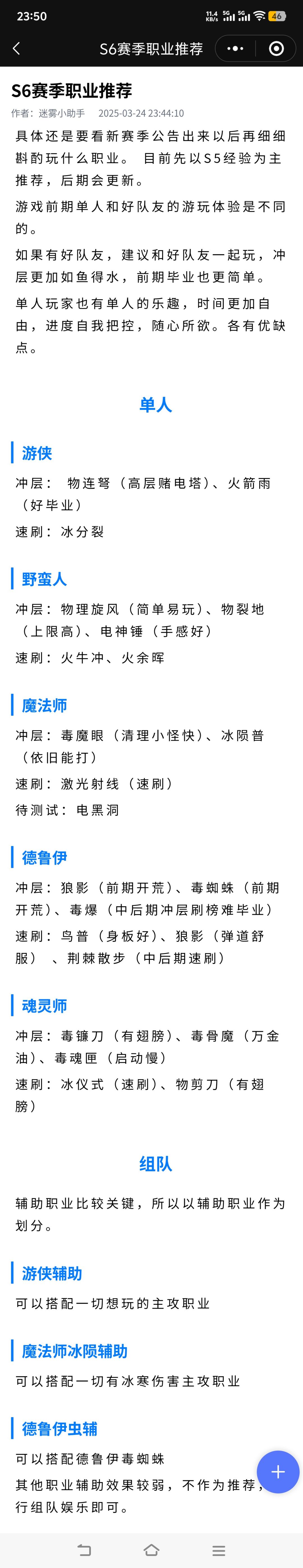 与刚入坑的新人们分享一些个人的小理解,本文主要面向比较休闲的新手玩家,并不适用于冲层的大神们。 职业: 游戏目前阶段是隔一个赛季开一个新职业(如:S7新职业圣骑、S8无新职业)。关于选什么职业?有新职业的赛季优先推荐选新职业,强度一般都是在线的,而且玩的人多,流派开发速度也快。没新职业赛季就随意了,因为现在圣化系统弄的挺迷的,可能这个赛季很强,下个赛季就(手感)下水道了。但是总体来说各职业差距其