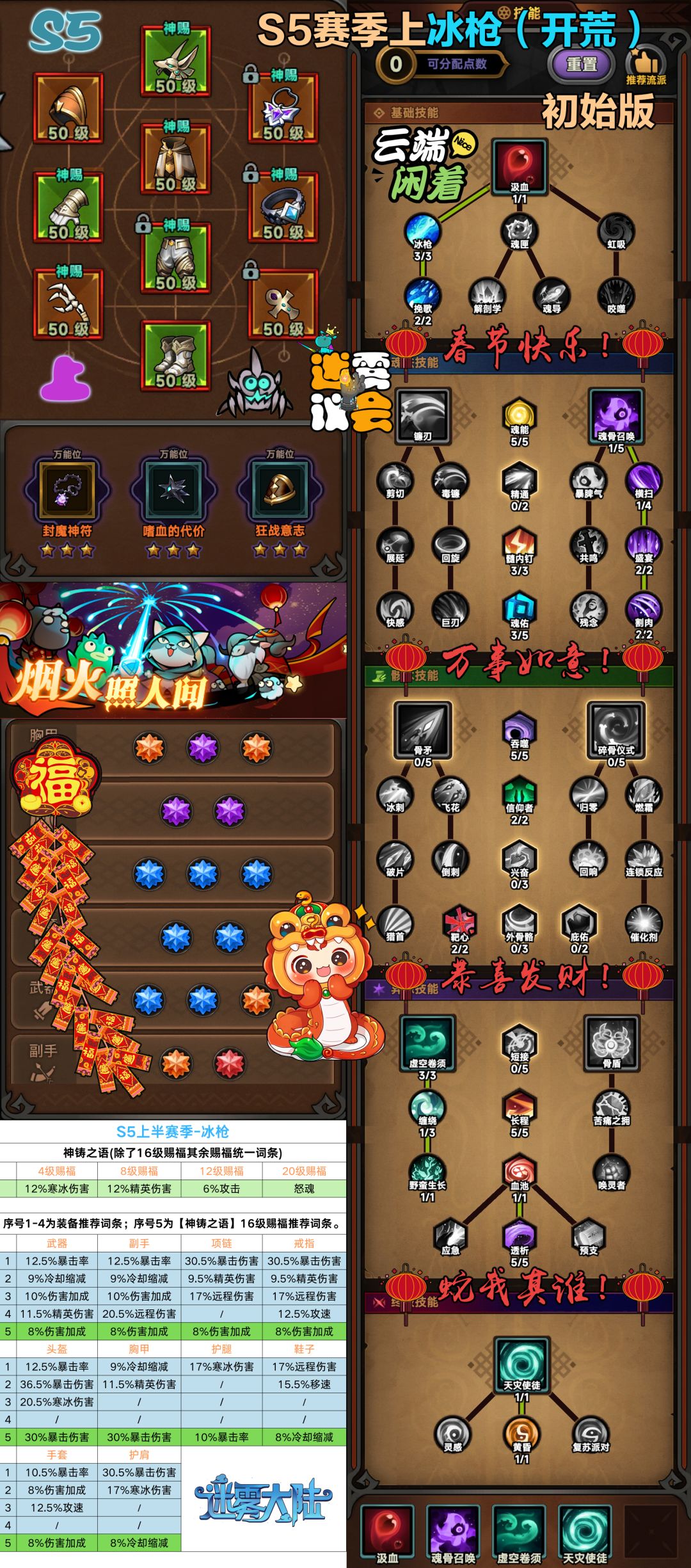 【迷雾大陆】【攻略】S5赛季魂灵师-【冰雪神枪开天辟地】BD卡片