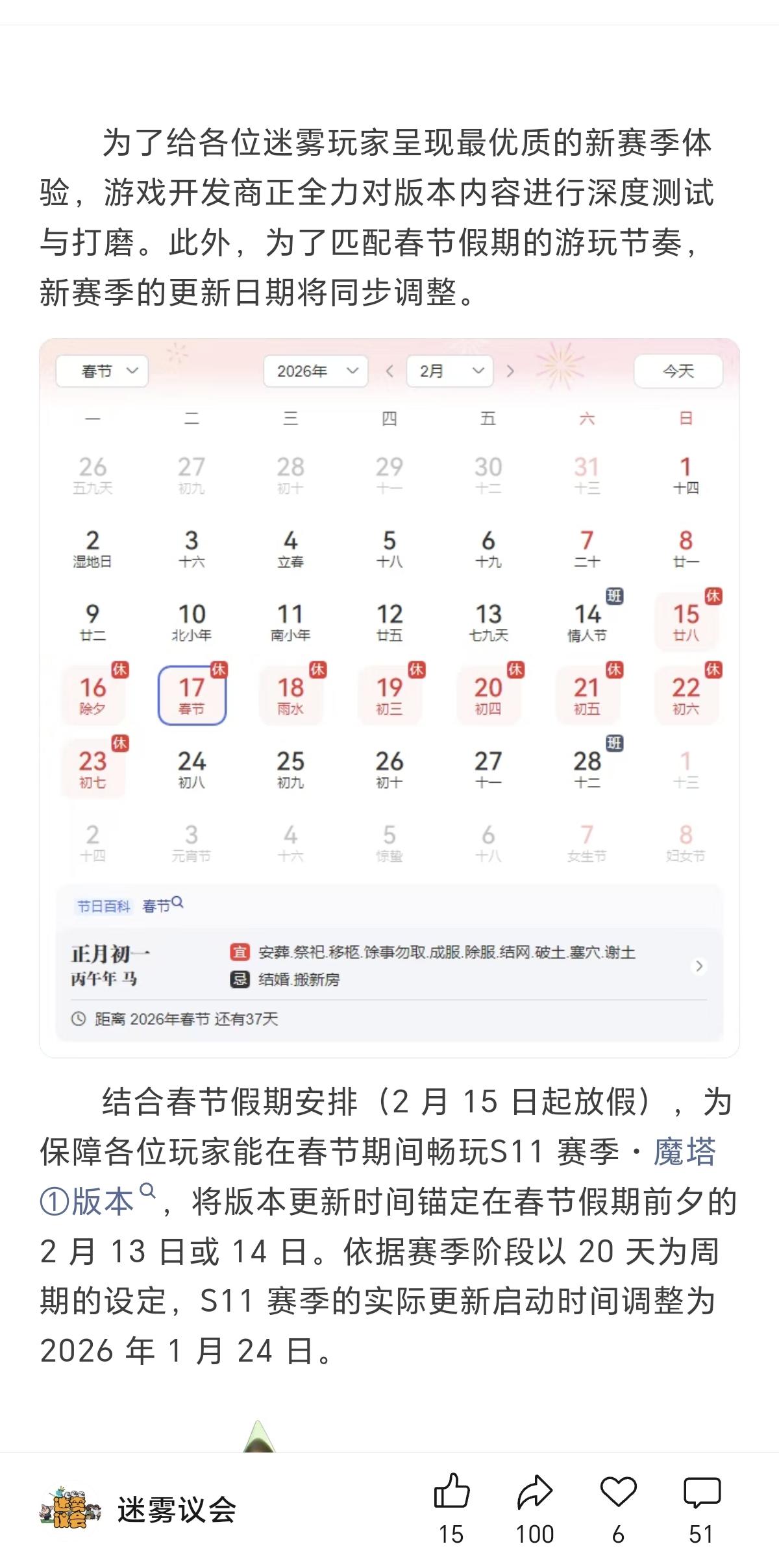 公众号那边说了赛季时间
