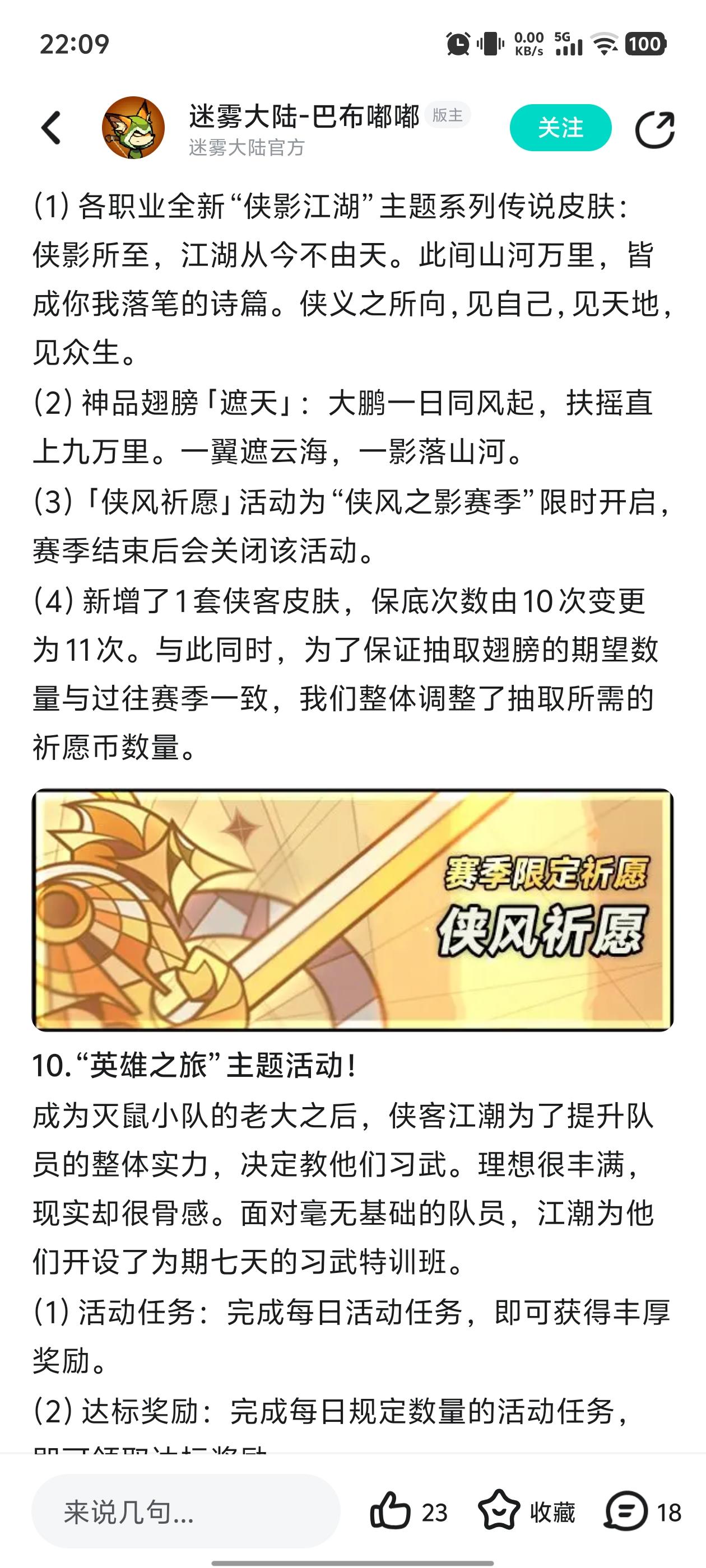 《迷雾大陆》S11侠风之影赛季更新公告