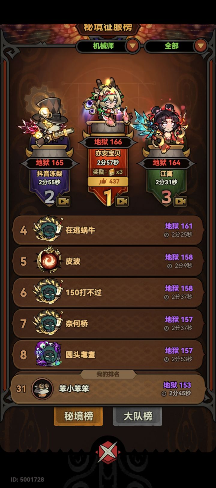 这打boss有什么诀窍吗?我也换了傲骨戒指,杀王手。4圣化也能打158。。怎么boss伤害榜单都上不去,我看排名第四的还是一圣化的。。弄不明白。。附那个1圣化排名第四的图