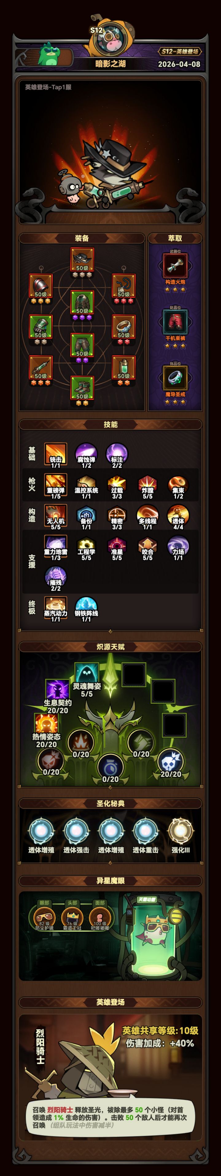 首先重做一套精准猎杀的提升远比想象中大,高层足球的精英怪非常肉,所以打精英主要靠爆炸魔眼、英雄技能和火球的伤害,精准猎杀可以更快清理小怪打出爆炸魔眼的伤害,并且减小进度压力。技能方面,屏障就不要带了,重力地雷的持续聚怪可以让元素三层增伤更容易叠满,还能让爆炸头和无人机的群体伤害打中所有怪,比屏障的增伤更有用。假如你能够不放英雄技能不踢球打到第13波那么这关就大概率能过。大体节奏是13波英雄技能