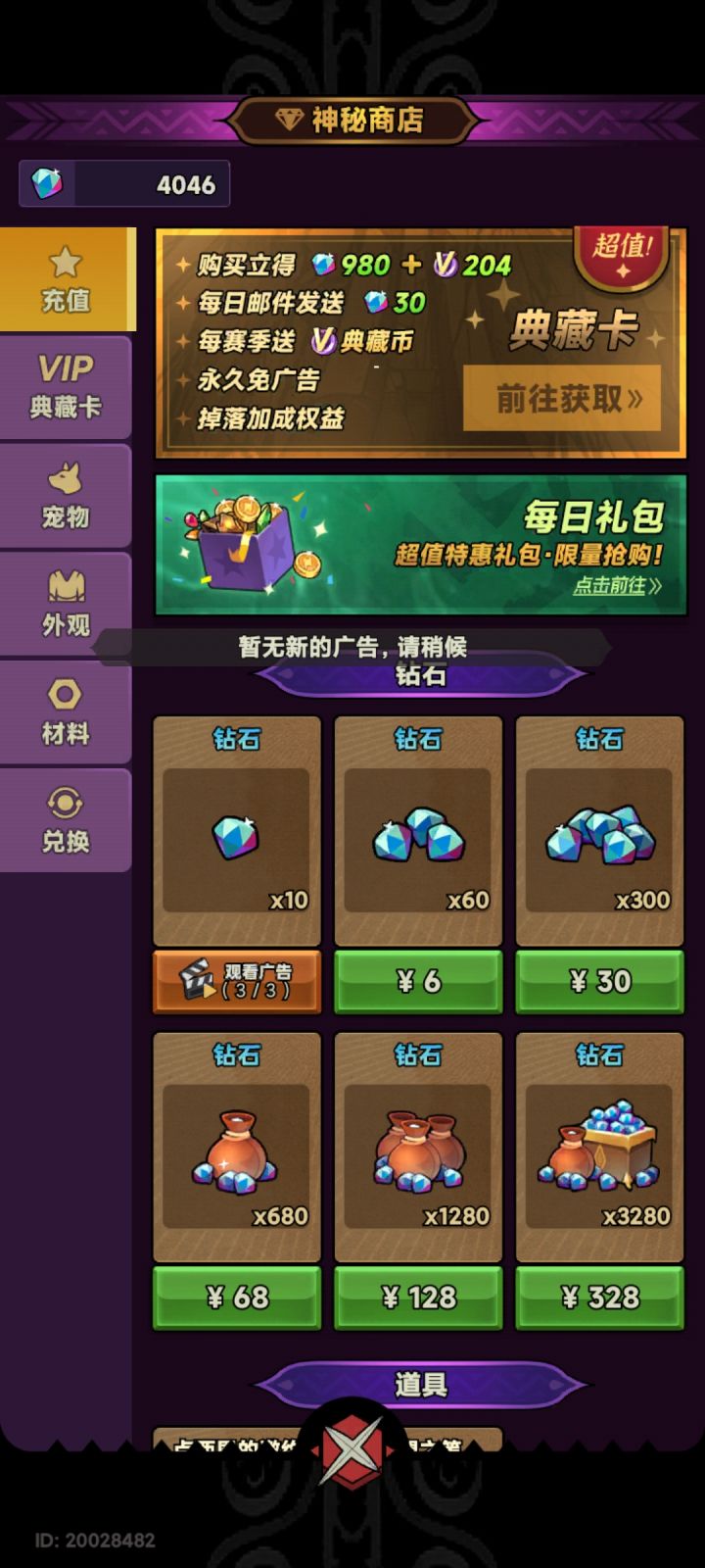两天了,新行宫更新后就不让领钻石了!什么广告都不让点了,作为平民,不花98,靠看点儿广告,拿点儿钻石你也不让了?这么劝退一个玩儿了3年的老玩家!真有你的!
