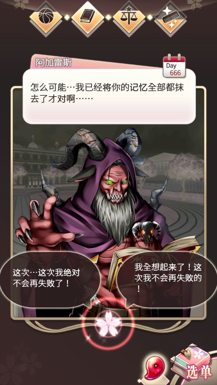通关道具封魔玉,三女主满好感。正常流程到达学姐被附身,选择只能救一人的时候,一直选择第三个选项继续思考,在连续思考了21次后(男主这智商真是低),终于想起了有封魔玉,驱魔完毕。接着时间恶魔登场,对话时选择说出恶魔真名,然后思考4次,选择阿加雷斯即可。然后就真结局啦,男主植物人恢复中⊙▽⊙