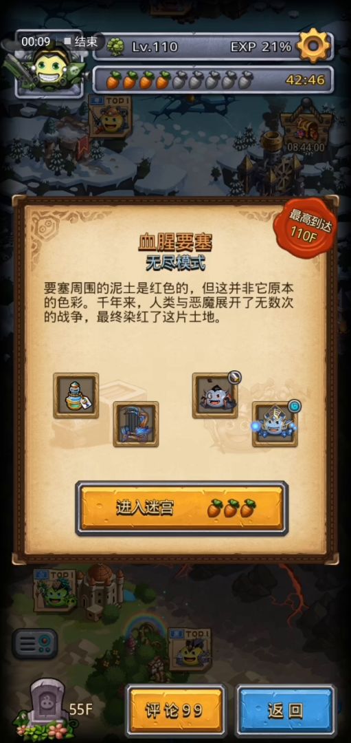 先看视频 介于这个档是昨天刚打出来的,所以才到100层,但据此也能看出来,其实已经无敌了。 先说搭配和地图:福神加世子加任意魔法系,地图为血腥要塞。 再说要求:魔法系唯一要求是星级低,没吃加血量的食物。福神和世子如果已经吃满了食物,但很遗憾你可以很难达成,如果是萌新还没有世子和福神,那恭喜你,你可以自选金罐选这俩(如果你想要体验1201的话),然后不要吃任何加血量的食物,并且不要升星。 再