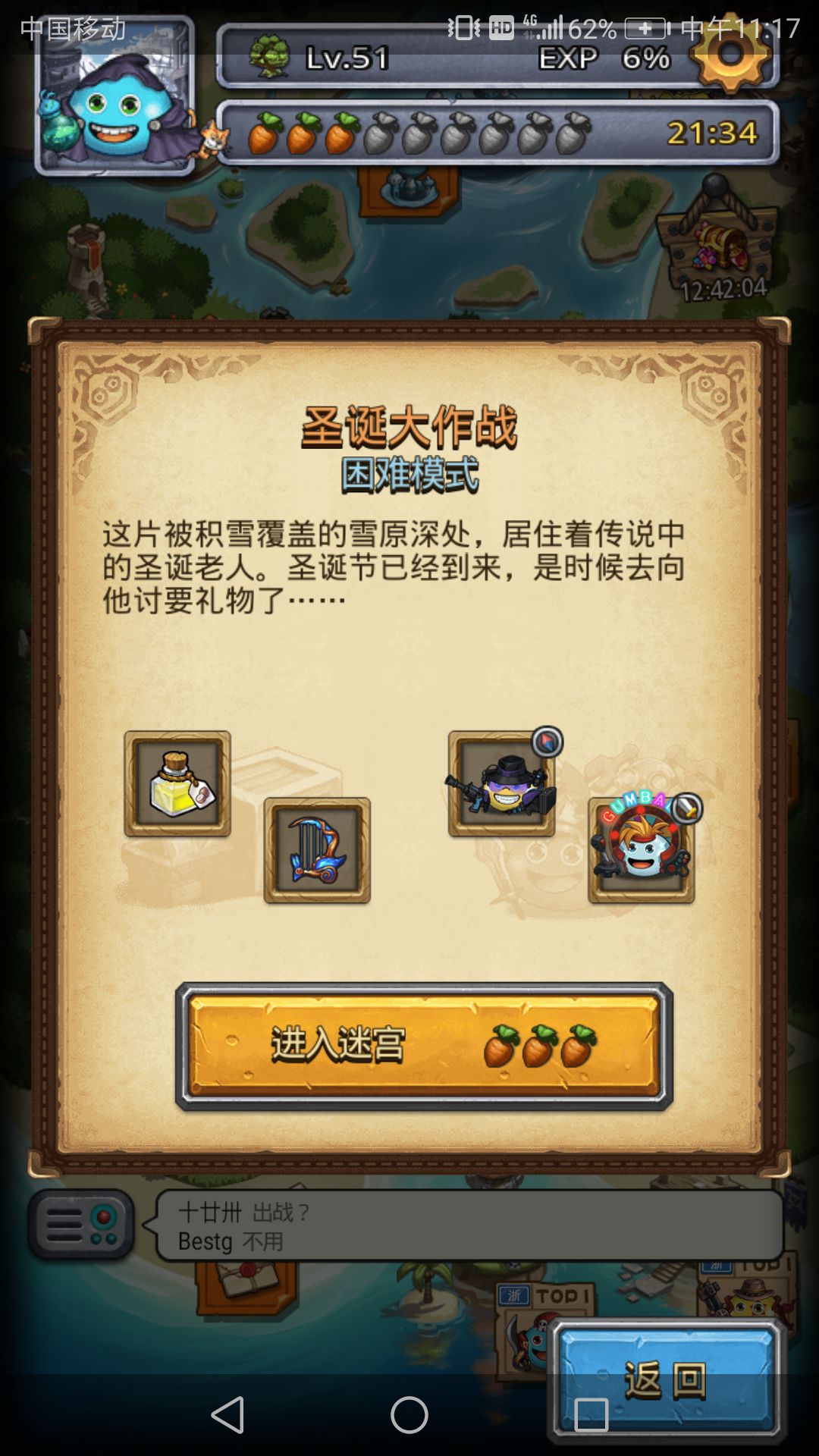 作为一个挂树不多的渣新,在发现用神灯泰坦刷活动本把自己点死以后,我就知道渣新得另寻出路,所以在此给大家提供另一个简单的阵容。 男巫出战,链接圣斗士间谍,神器六星竖琴可以不带,药水椰子浓缩汁可以不带,带是为了boss层前回满血,称号点出大地,这样我们可以在没出驯鹿帽子或者雪球不够时跳楼重来,虽然没有魔毯大地两次重来容错率高,但是你大地一次还都不够。。是真的够黑啊!! 进图送掉猫,把自己点到半血,触发
