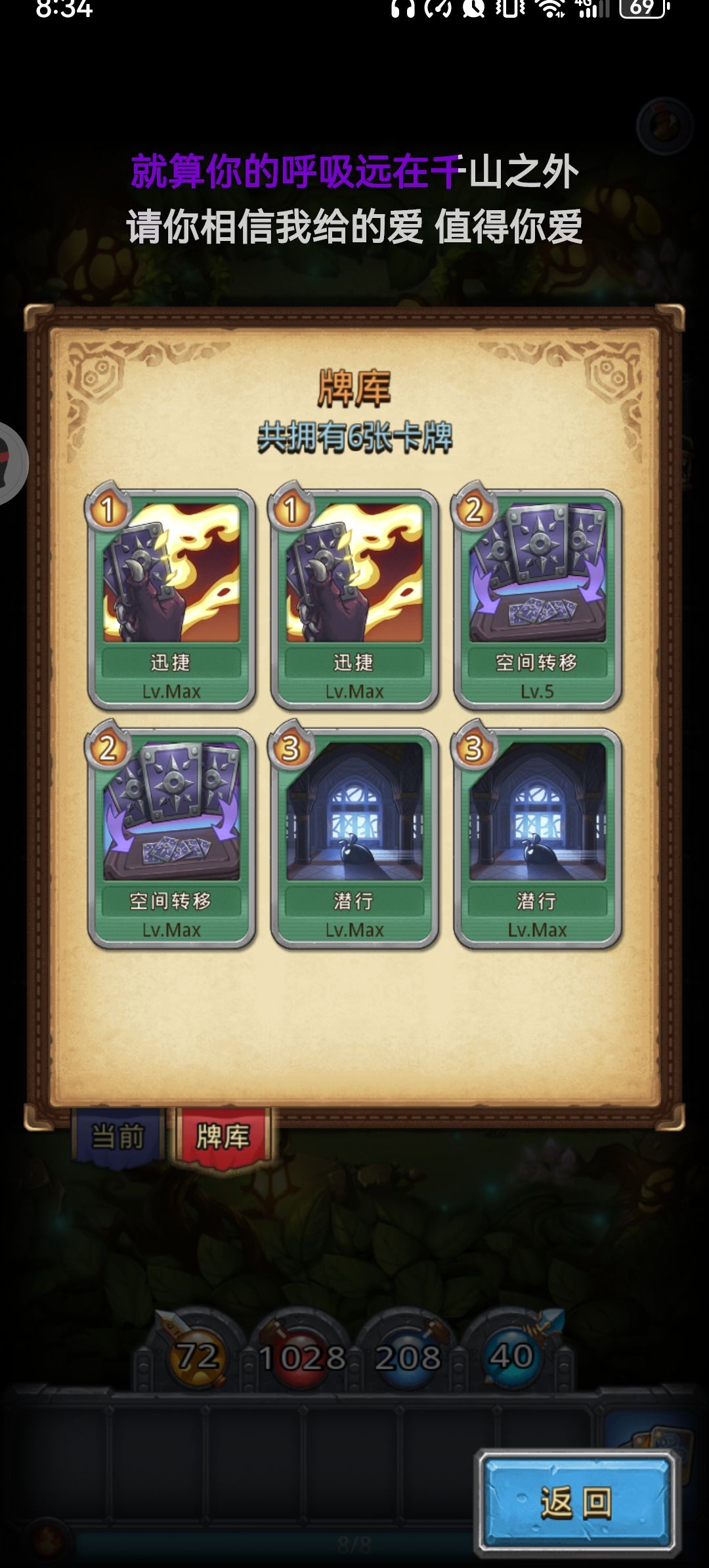 试了两把 第二次发现其实只要六张牌就可以完成 前期先积累幻象之砂 保险起见把两张空间转移都强化满级 多余的牌清掉 顺序∶潜行 迅捷 空间转移 潜行 迅捷 空间转移 潜行 迅捷(可能由于潜行作用是下一张牌额外释放一次 导致这几张牌就够了 迅捷是保证能量条#不思议迷宫 )