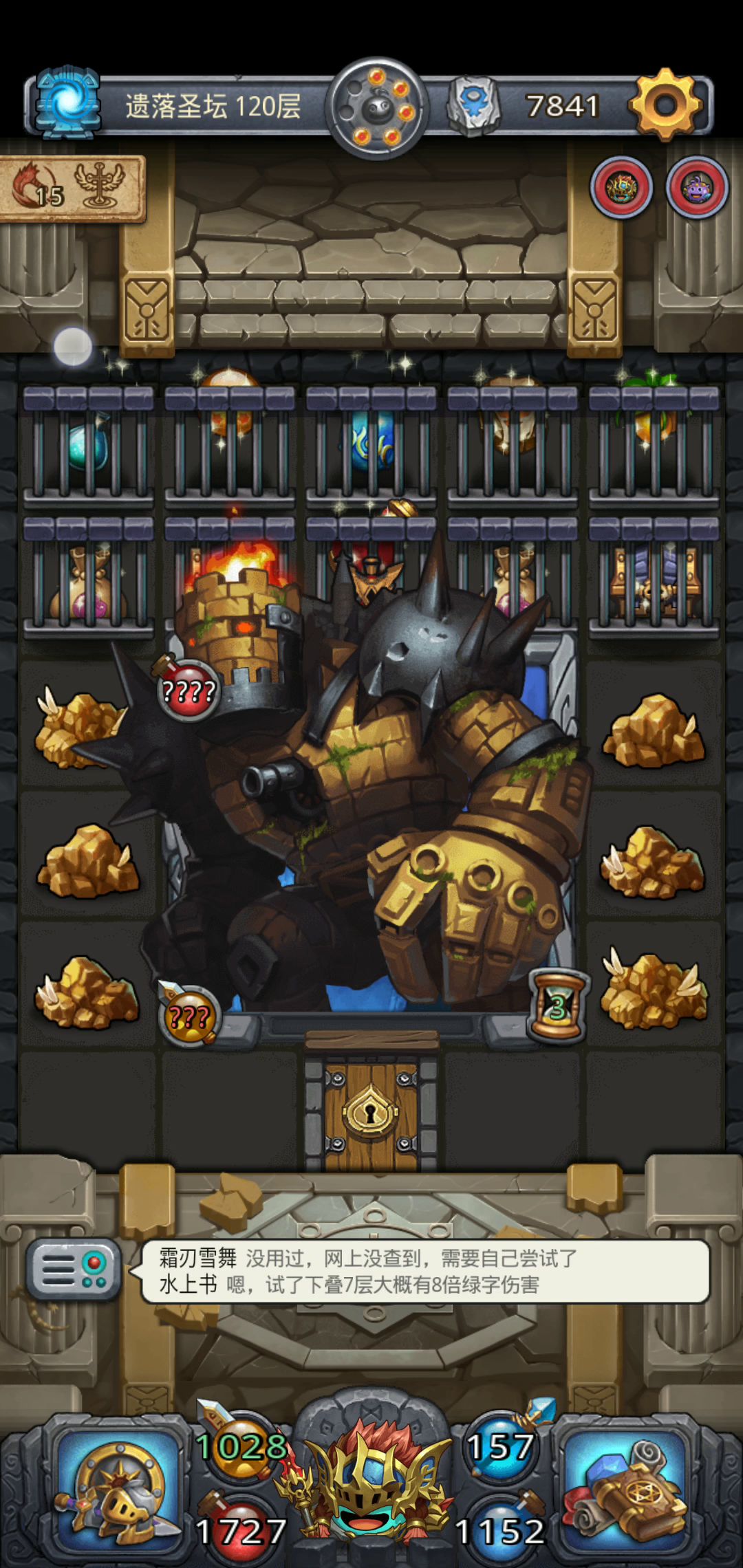 宝物商店三星及以下装备全清,卷轴商店买地震和瓦解;