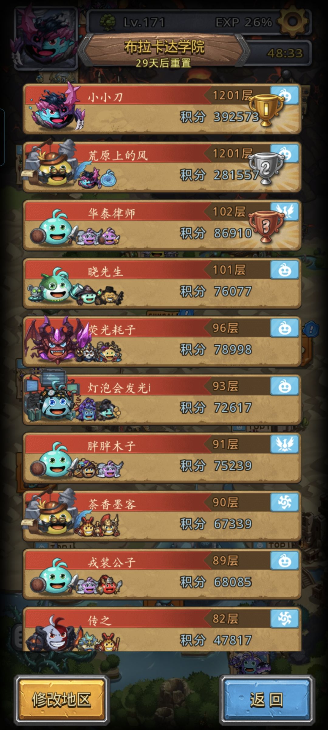 一般40多层第一次召唤的两小弟会战死,我们手动爬到49层;