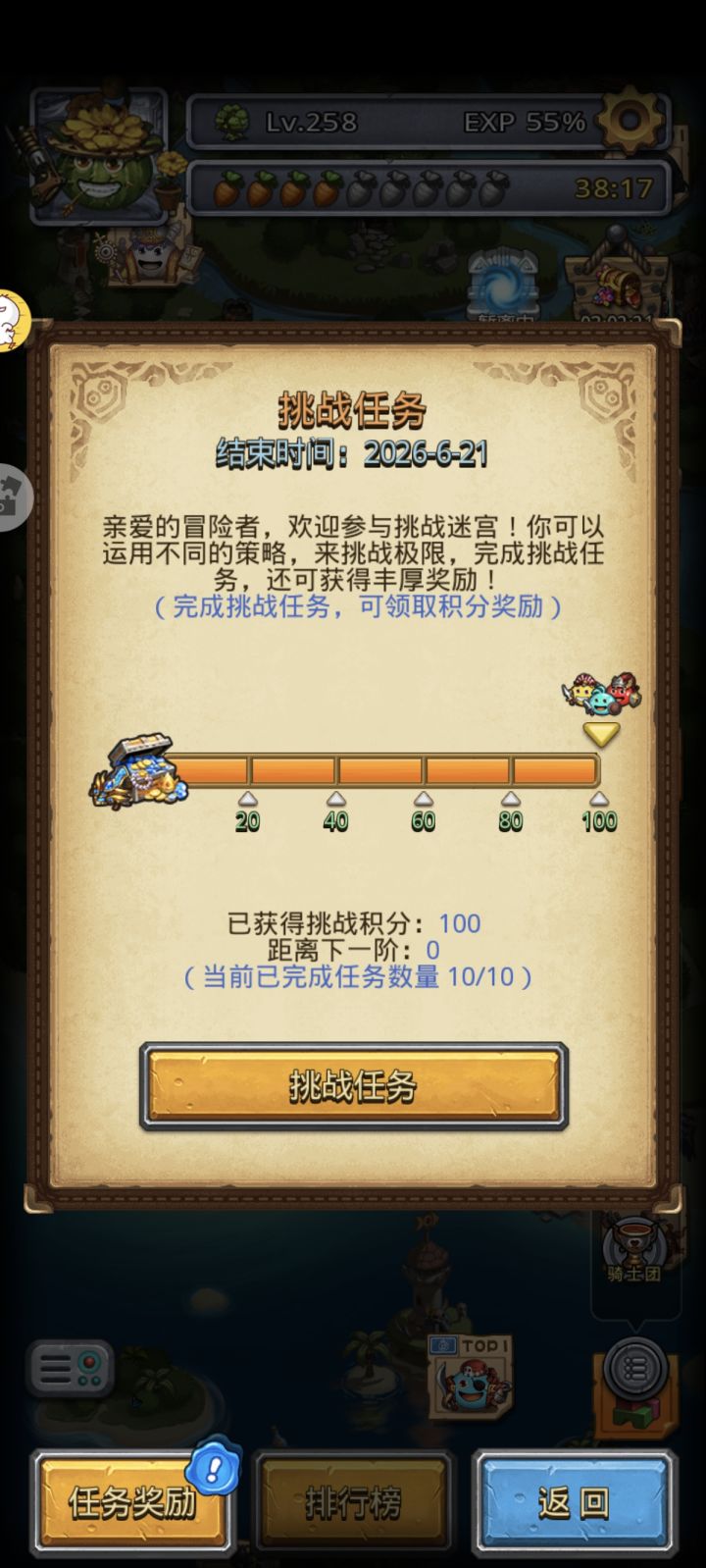 看攻略说这图简单,用冒险者带上雅典娜和海贼王可以轻松完成所有任务。结果我用了两次大地,打到105层才做完这个手册满级任务。差点就放弃了,真难顶。