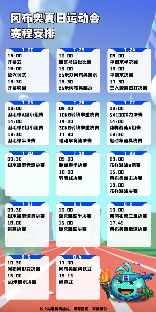 大家好,我是放牛最近的奥运会大家都有关注吧还有不到十天的时间就开赛了家里积灰的电视终于有了出场的机会除了令人激动的奥运会迷宫的(冈布)奥运(动)会也即将举办为了响应提高冈布奥体质,身体是挖矿的动力埃拉西亚委员会十分重视这次奥运会安排了不少考验实力的赛事有50米跳水、两人三足这样的项目还有斥重金邀请神秘嘉宾担任解说而四大阵营的代表将在这两周内决一雌雄争取属于自己的奖牌放牛在前