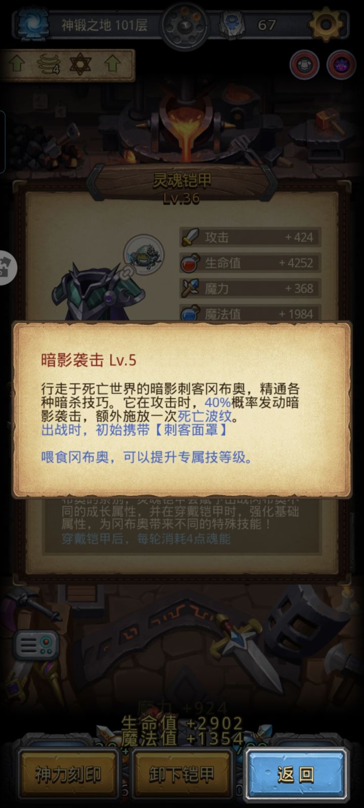 神锻之地735 种组合,这次 的 深渊的恶魔地穴领主韩轩暗影刺客。炽热钢水+炎魔之手+大盗神黑暗仲裁暗元素星界裁决者 。有缺一光环 ,恶魔出站装备混沌之火套装攻击5%概率释放火球术,炎魔之手攻击20%概率释放火球术,韩轩白描15%释放火球术,钢水10%释放火球术或者失明术,这有40-50%释放火球术了。暗影刺客40%释放死波,黑暗仲裁40%释放死波,韩晗白描8%释放死波 ,88%概率释放死波。地穴