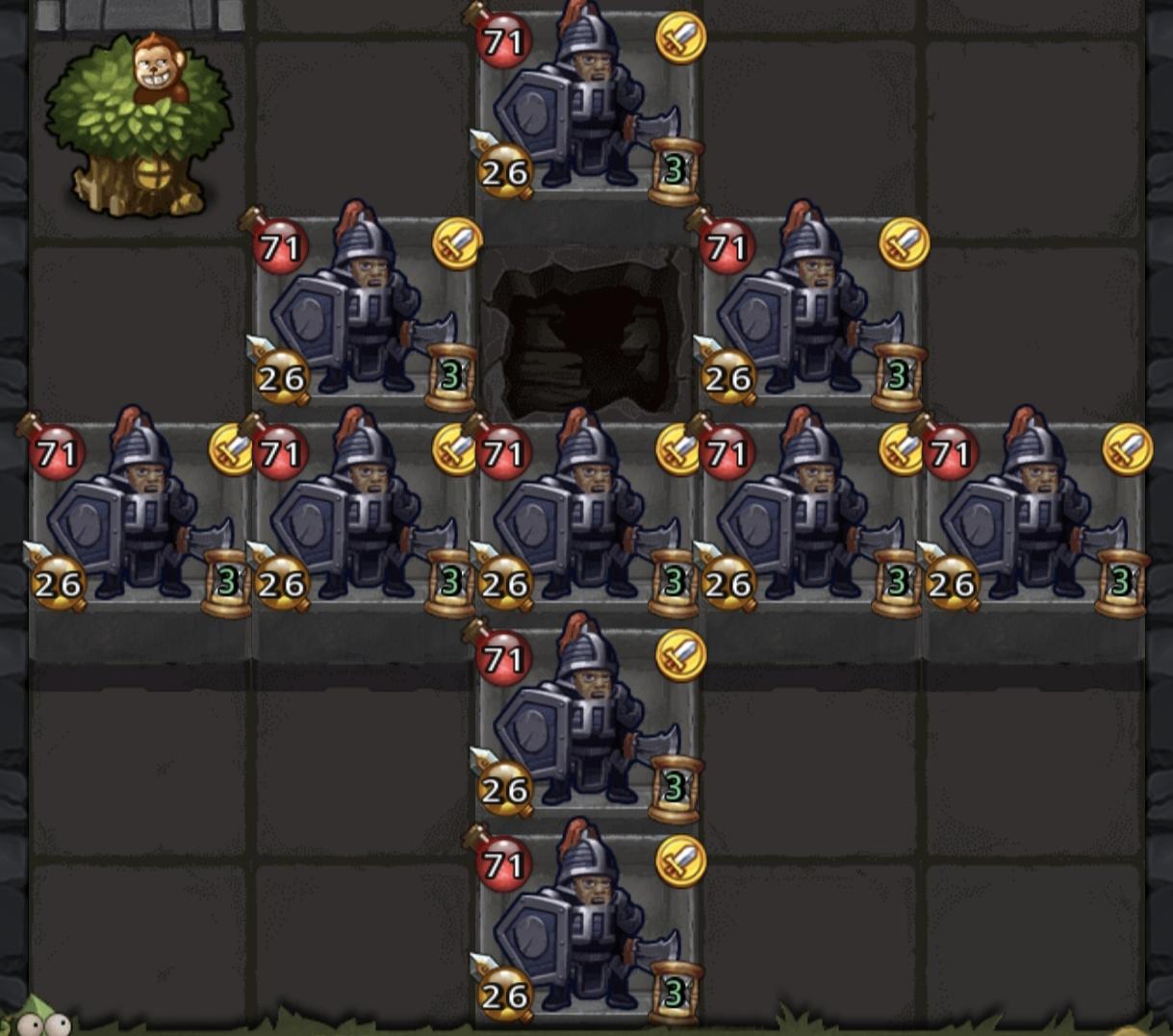 女王技能占格子,拾取一点掉落物,韩信技能召唤10个小弟