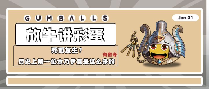 大家好,我是放牛经过昨晚的激情跨年终于喜迎2025大家新的一年健康幸福!蛇年好运!不知道昨晚大家是不是都出去耍了但是本牛这种老宅男来说被窝和手机永远是我的好兄弟!咳咳,言归正传新年第一期《放牛讲彩蛋》栏目再次起航今天给大家聊聊周年庆的新冈宝奥西里斯冈布奥奥西里斯冈布奥 奥西里斯同样是赫里奥波里斯-九柱神之一同时也是古埃及神话中的冥王以及植物、农业和丰饶之神奥西里斯的形象