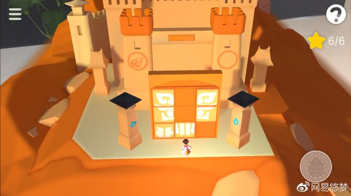 第一次写,也不知道能不能帮到大家(如果大家觉得画面经常跑偏的话,可以拿手当平台,把它拉回来。)前一篇如图把缺口利用视角拼合即可前二篇点击石块,使图案拼合视角转到前上方,是一个心形岛,就可以通关了第一关对准人物和画像拼合小女孩是下过雨才会出现画第二关这里的石板可以转,把它转成太阳的图案就可以了然后把太阳对准图案,就可以通关第三关把第图案转到拼合在一起第二个图案拼好后,在