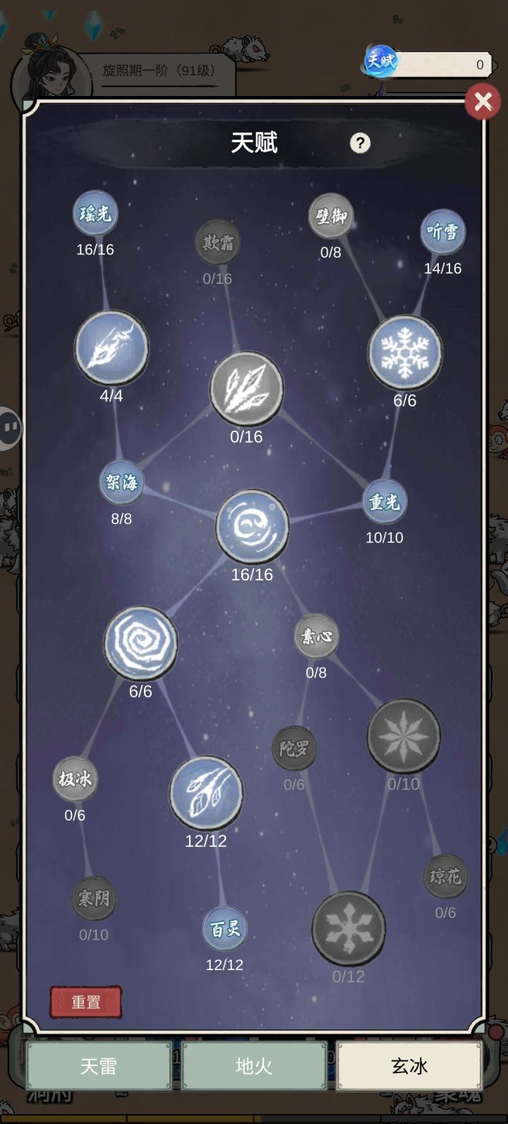 目前四个技能跟天赋加点大概这样,能衔接技能时间的空缺,推图靠技能等级,技能等级越高伤害越高#单机游戏 #无限流修炼模拟器