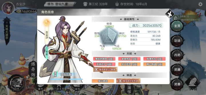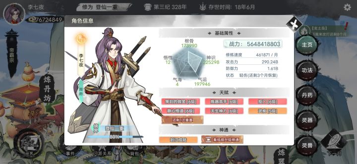 2.弟子资质基本全都是正向的,没有负面的天赋,好处是基本不用可以刷天赋,坏处是天赋的差别变得很小,天赋系统的可玩性大大缩小