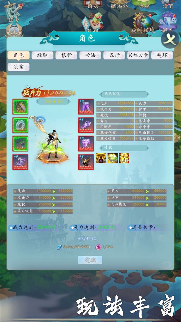 角色玩法-法宝、魂环、灵魂力量、五行、功法、根骨、经脉