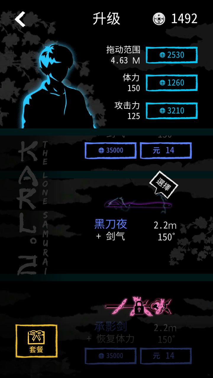 半藏刀是买了5把250000的刀之后解锁,加10%血量和10%攻击,特效是盾(触发会清空技能槽),技能槽满了之后能重新生成盾,技能效果是砍两刀加长的,然后清屏攻击(范围大概一个屏幕)寒月刃是打死无限挑战模式的boss获得(一共111%血量),技能是先随机雷劈,然后清屏攻