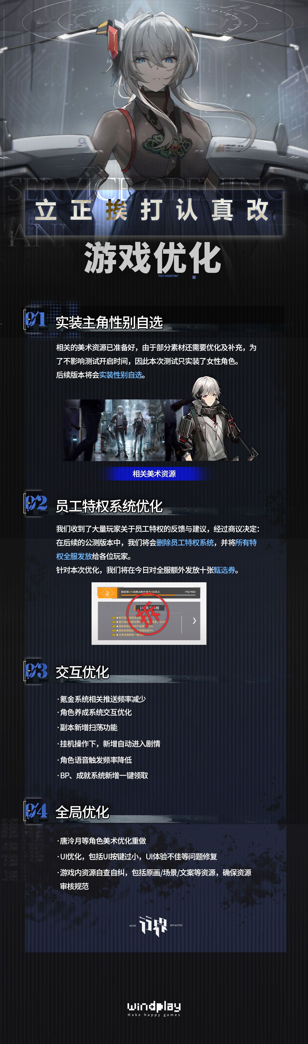 观察者测试开测&立正挨打第二天 今天也收集到非常多少司寇大人的反馈 无妄抓着研发小哥对到现在,又给大家获得了新一轮的后续优化报告! 大人们请过目! 各位的建议我们每天都会收集起来仔细核对,各位的评论对我们都非常重要!#游戏讨论