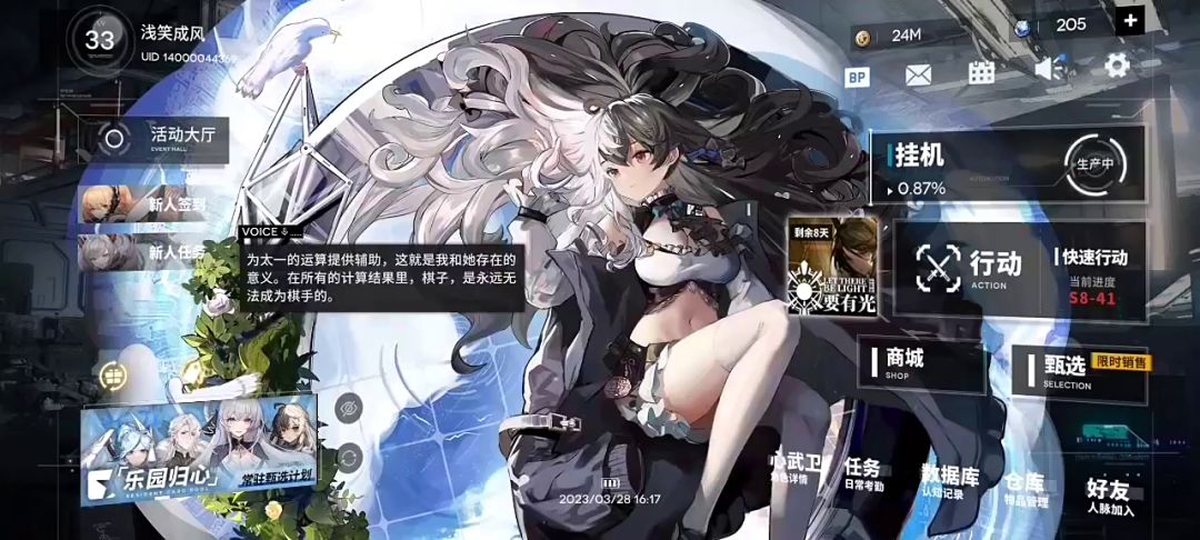 ~卡池变动 此次卡池为零进制/壹研所限定卡池初次登场,甄选必出由70变为120,累计必给由100/150变为120/200,所以满星要求的抽卡次数会有一定上升。 ~~角色简述及评价 <七杀>0级专武登场即爆发一次,对敌方造成禁能debuff,为自己添加免疫控制与闪避,敌方低血时造成一次条件斩杀。 角色一技能与三技能为常规输出技能,技能给敌方添加禁能与沉默debuff,为自身添加闪避并赋予减伤,当敌