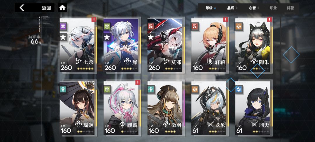 第三天就干满暗网20了,而且不是30级专武,差一个那个突破道具,29级。 为什么那么多犀,因为限定池歪麻了,720保底六星的,而且有一个双黄七杀的前提还是硬720保底的,现在犀差一个五星。 想当初我也是三四个月才打满暗网20的,还可能不止一队,可能用了两队,新号第一天就到s9了,把全部能打的打完赚了两万暗晶,塔到61层。等22号应该就是主线全通了。 顺带一提,新号有两种玩法,一种是新手玩法,一种是