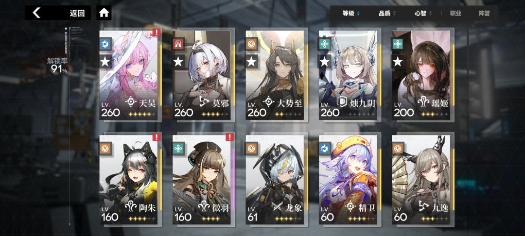 第三天就干满暗网20了,而且不是30级专武,差一个那个突破道具,29级。 为什么那么多犀,因为限定池歪麻了,720保底六星的,而且有一个双黄七杀的前提还是硬720保底的,现在犀差一个五星。 想当初我也是三四个月才打满暗网20的,还可能不止一队,可能用了两队,新号第一天就到s9了,把全部能打的打完赚了两万暗晶,塔到61层。等22号应该就是主线全通了。 顺带一提,新号有两种玩法,一种是新手玩法,一种是