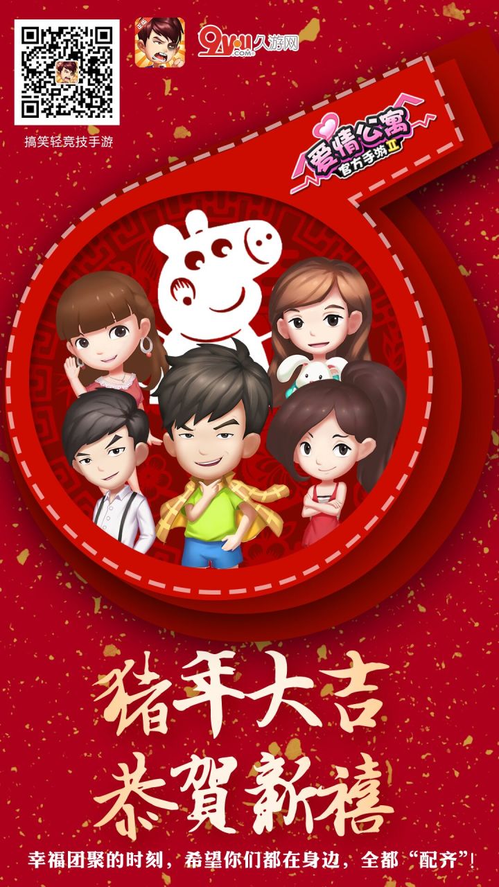 房客大大们猪年快乐!公寓新春模仿秀正在火热进行中,节日礼包也在限量发放中~即刻扫码前往“爱情公寓官方手游”微信公众号领取福利吧!