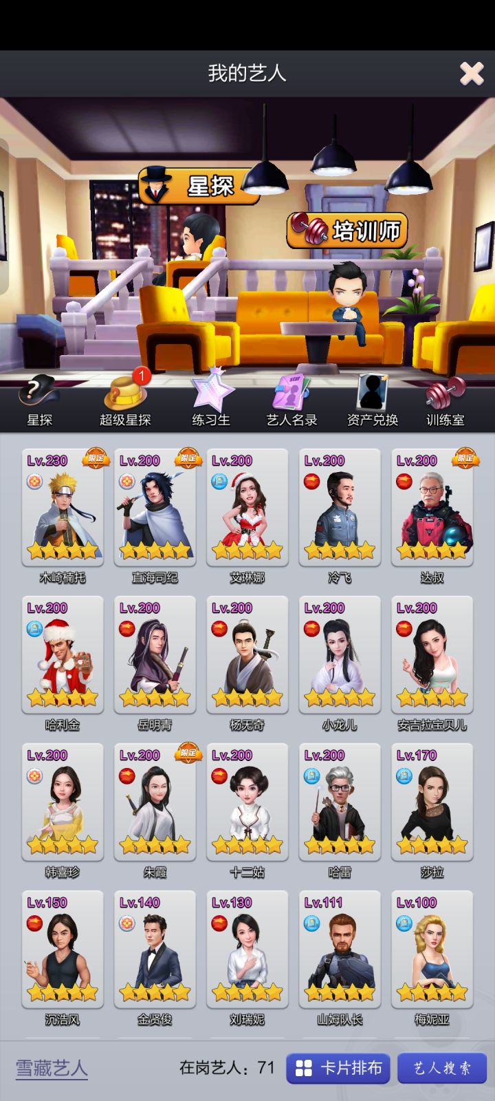 第一个艺人免费4星建议欧美女,便于尽快凑欧美全明星阵容。前几部记住把艺人等级拉起来。第五部电影后,会开启剧本库。拍摄剧本选择:第一优先人多,第二优先星级高,第三初期躲日韩本。单个艺人强度排序,六星(隐藏10%总票房)>限定五星(隐藏5%总票)>普通五星>四星。艺人组合可能有票房技能,以后你会知道的。拍完后有期待值问题,记住街区1可以无视期待值,票房玄学。街2至少拉到200期待。街7以上尽量