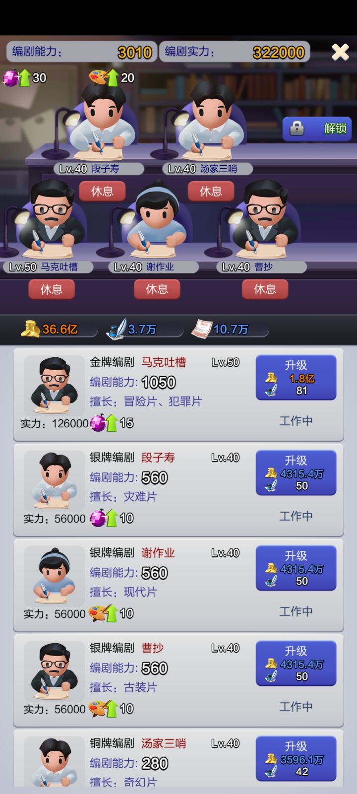 第一个艺人免费4星建议欧美女,便于尽快凑欧美全明星阵容。前几部记住把艺人等级拉起来。第五部电影后,会开启剧本库。拍摄剧本选择:第一优先人多,第二优先星级高,第三初期躲日韩本。单个艺人强度排序,六星(隐藏10%总票房)>限定五星(隐藏5%总票)>普通五星>四星。艺人组合可能有票房技能,以后你会知道的。拍完后有期待值问题,记住街区1可以无视期待值,票房玄学。街2至少拉到200期待。街7以上尽量