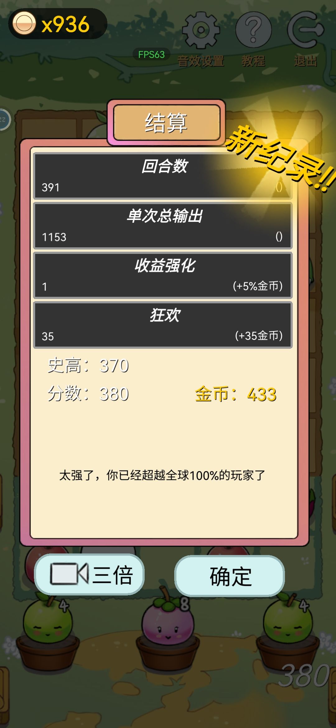 玩了几天来看,这是一款挺不错的休闲类的游戏,但可惜的是可持续性比较低,望后续官方可以增加一些比较不一样的模式吧,比如加一些道具,或者残局破解闯关之类的模式 总结一下经验吧,在游戏过程中不要急着合成更高的植物,要平均合上去,合到64就可以停了,把上排4个格子都是64的,中间那格子可以是16或者8的都可以(因为中间的史莱姆出现的都是横跨两格的大史莱姆,所以需要的防守力比较小),然后下面那排也要保持至少