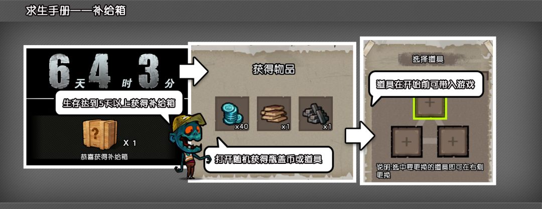 为什么总死? 为什么我活不久? 我要活下去! 别担心,告别萌新从本帖开始! 我们特意发布了求生手册系列官方小贴士。简单介绍了游戏内的各个系统。我们也将不断完善这个手册,在有新内容的时候第一时间介绍给大家。 下面就来一起看看吧: 求生手册——补给箱 https://www.taptap.com/topic/2691227 求生手册——排行榜 https://www.taptap.com/topic/