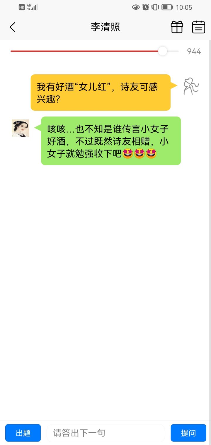 首先非常感谢小伙伴们脑洞大开积极贡献的各种小道具,现在已经有差不多八十个小道具了。然后这里提个小意见,就是可以提交一点其他诗人的小道具(现在送李白的酒和剑已经有十几种了😂😂),比如诗人写诗时候的所见所闻,平时的兴趣爱好等等都可以yy成一个小道具,但是道具一定要跟诗人有关系(目的是通过小道具的故事让玩家更多的了解诗人,像给李白送寒假作业这种就不行了)