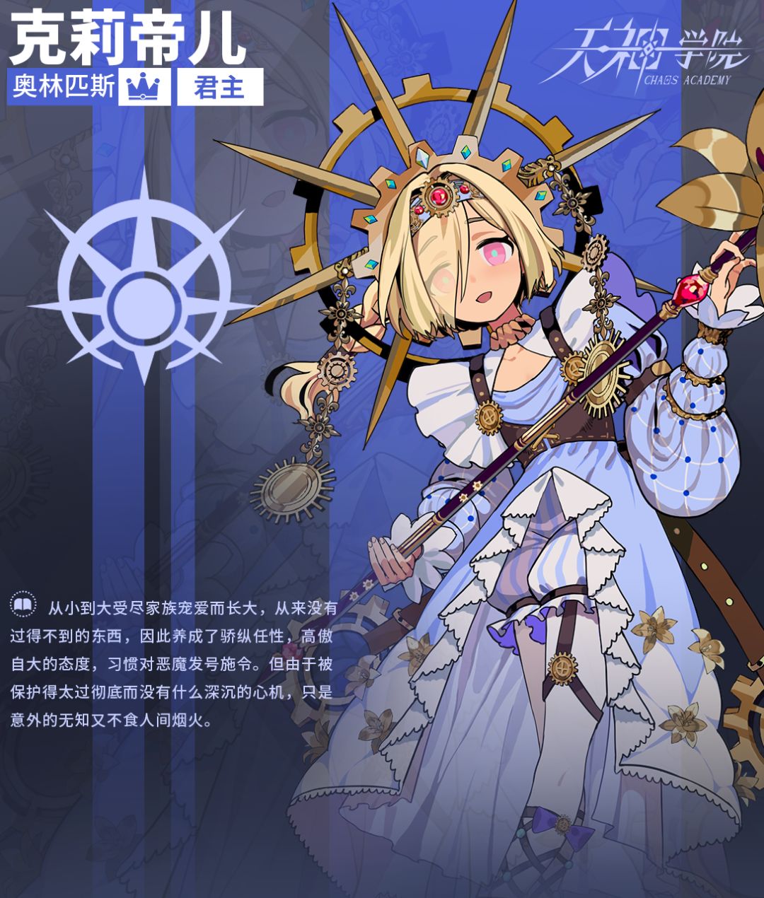 【奥林匹斯 】君主科普 取材于光辉灿烂的古希腊神话 召唤奥林匹斯山的诸神降临 天真烂漫却又任性无知的君主克莉帝儿 究竟依靠何种魅力 使得诸神对她青睐有加? 我想要的东西,从没有得不到的。 __________________________________________________________________________________________________________